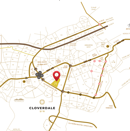 Signature Global Cloverdale is strategically located in one of Gurugram’s most promising growth corridors, Southern Peripheral Road. With the upcoming Cyber City 2 and 1,000-acre Global City, Gurugram’s future Central Business District, this location is set for exceptional commercial and lifestyle evolution. Enhancing its appeal are the proposed heliport in Sector 84, SPR Metro connectivity linking Rajiv Chowk to Manesar, and airbus/airtaxis, taking connectivity to new heights, quite literally. A 2 Km green corridor with cycling tracks and walkways adds a touch of wellness, while Asia’s largest jungle safari in the Aravallis and the Leopard Trail offer rare proximity to nature.